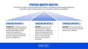 Another example is in the Exterior Insulation and Finish Systems Industry (EIFS). The Industry is represented by EIMA, and the Board deemed it necessary to far extend its reach in order to be successful. In 2022, and it included new and broadened strategic initiatives for promotion and advocacy, a new governance structure that aligns the new committees to each initiative, and new opportunities for enhanced participation for both EIMA’s members and allies that help develop a robust ecosystem. This effort helped the EIFS Industry win a significant victory before the Minneapolis, Minnesota City Council.